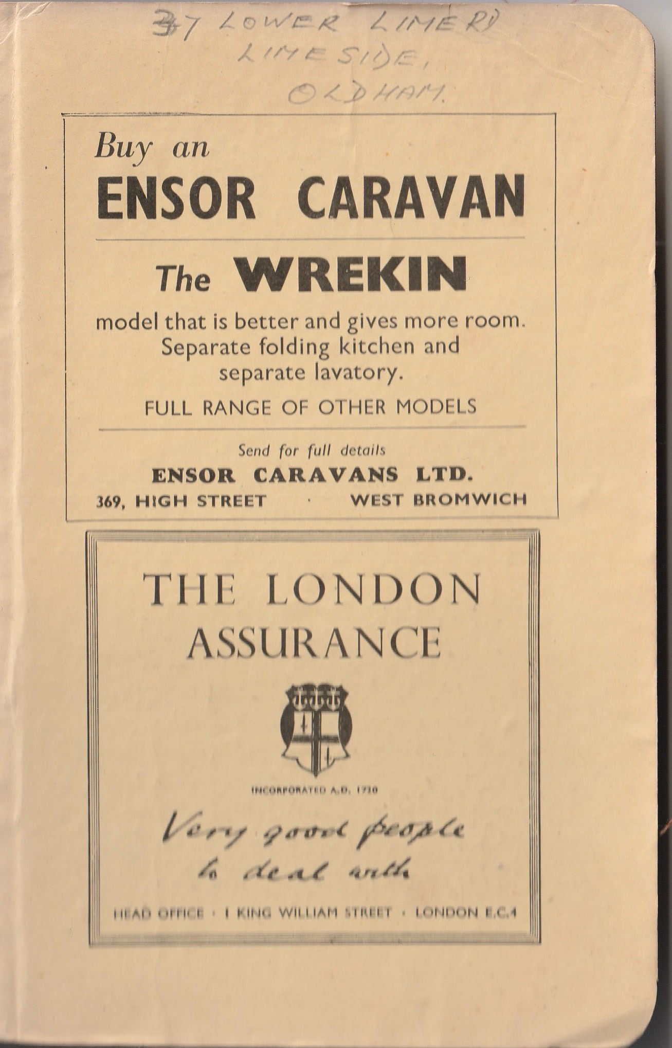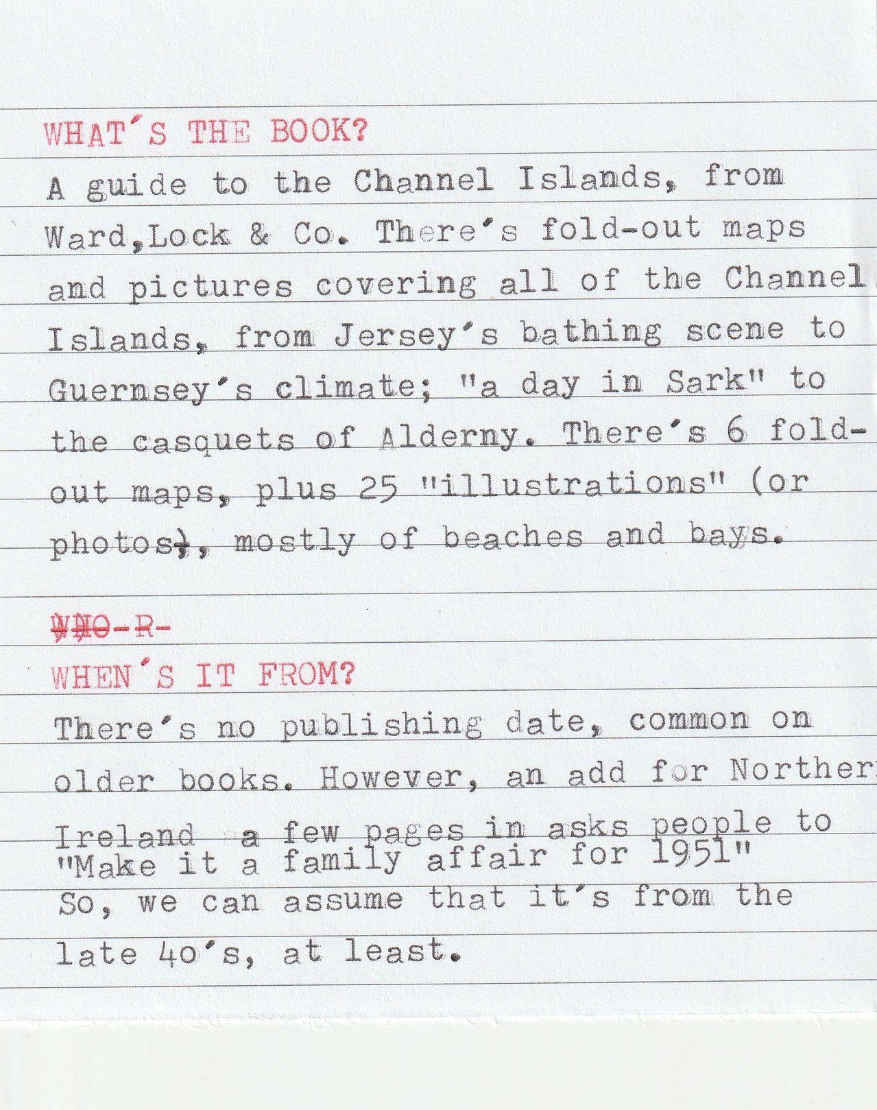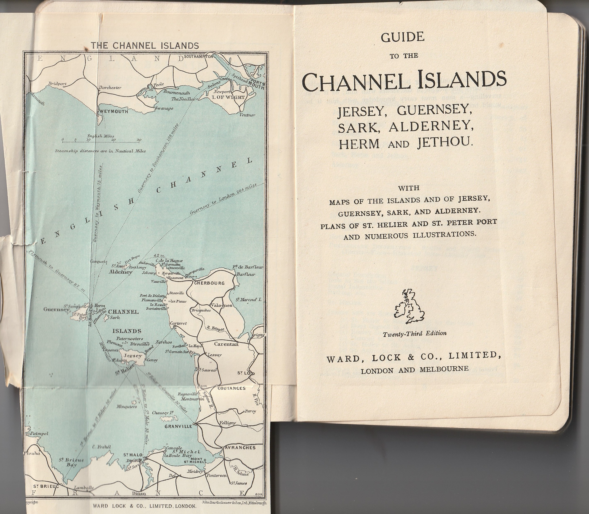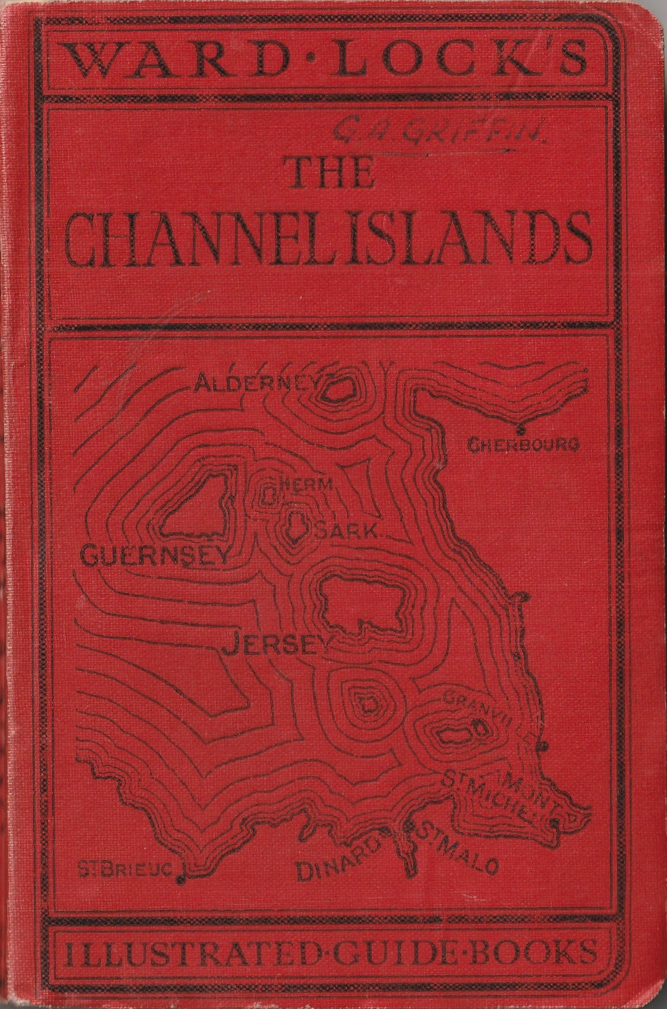 This book belongs to G.A. Griffin, from Limeside, Oldham. This Ward Lock's Guide to the Channel Islands is from the late 1940s, and has advertisements from that era.