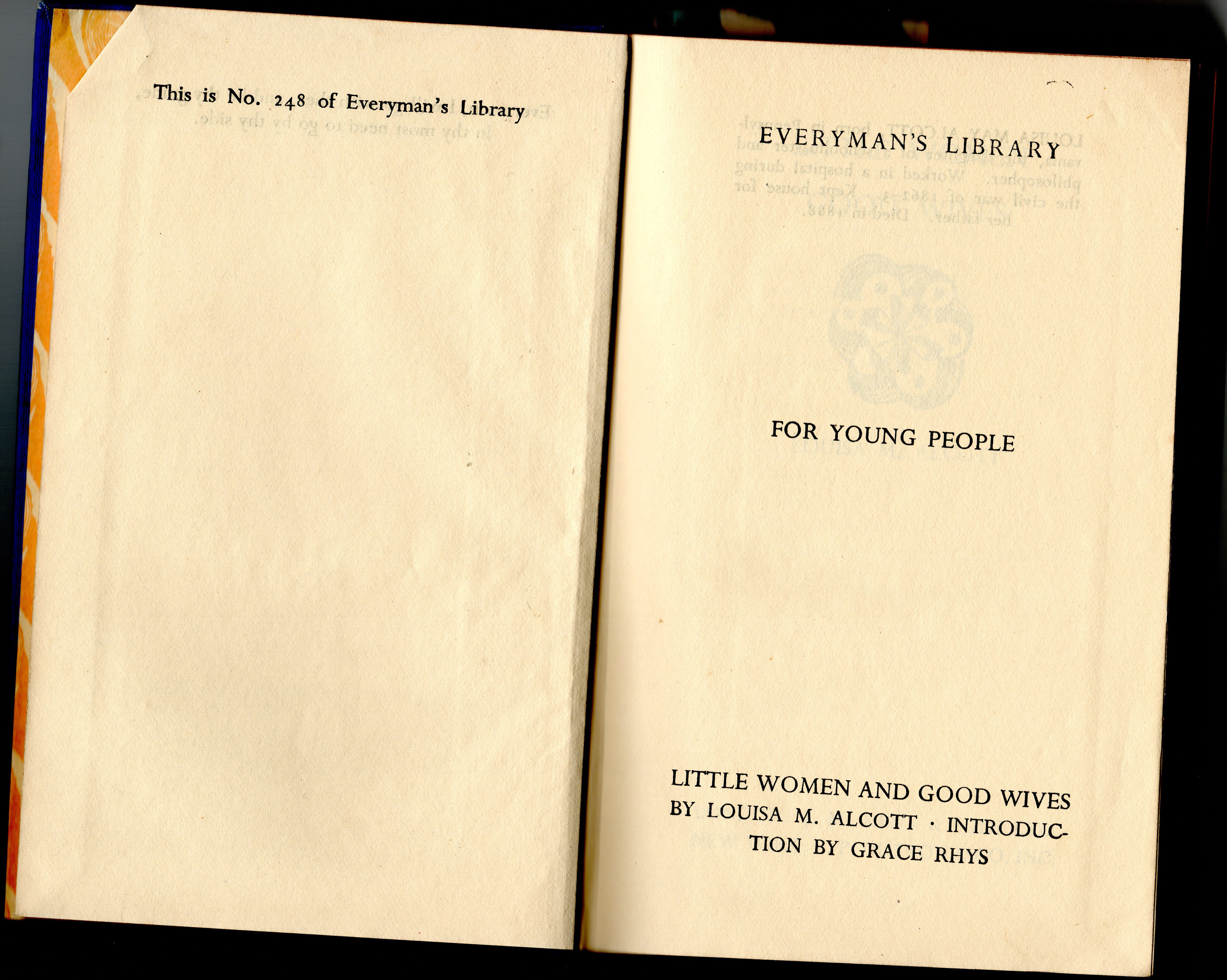 This book belongs to Jean Moffett. The book is Little Women, Good Wives, by Louisa May Alcott. It's part of the Everyman's Library, and was awarded for attendance to Scarva Parish Sunday School, by Rector W. E. Milligan.